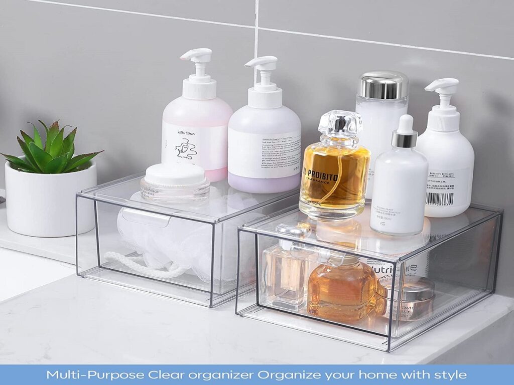 Stackable bins became a household favorite during the minimalist home movement of the late 2010s. Designed from clear acrylic or lightweight plastic, these bins make it easy to categorize toiletries, bath salts, or cotton products while still seeing what’s inside. Their stackable design saves space vertically, turning a single cabinet shelf into a multi-layered system. Some even come with pull-out drawers for quick access. Beyond practicality, they also promote a clean, cohesive aesthetic perfect for anyone aiming for a neat and modern bathroom setup.
