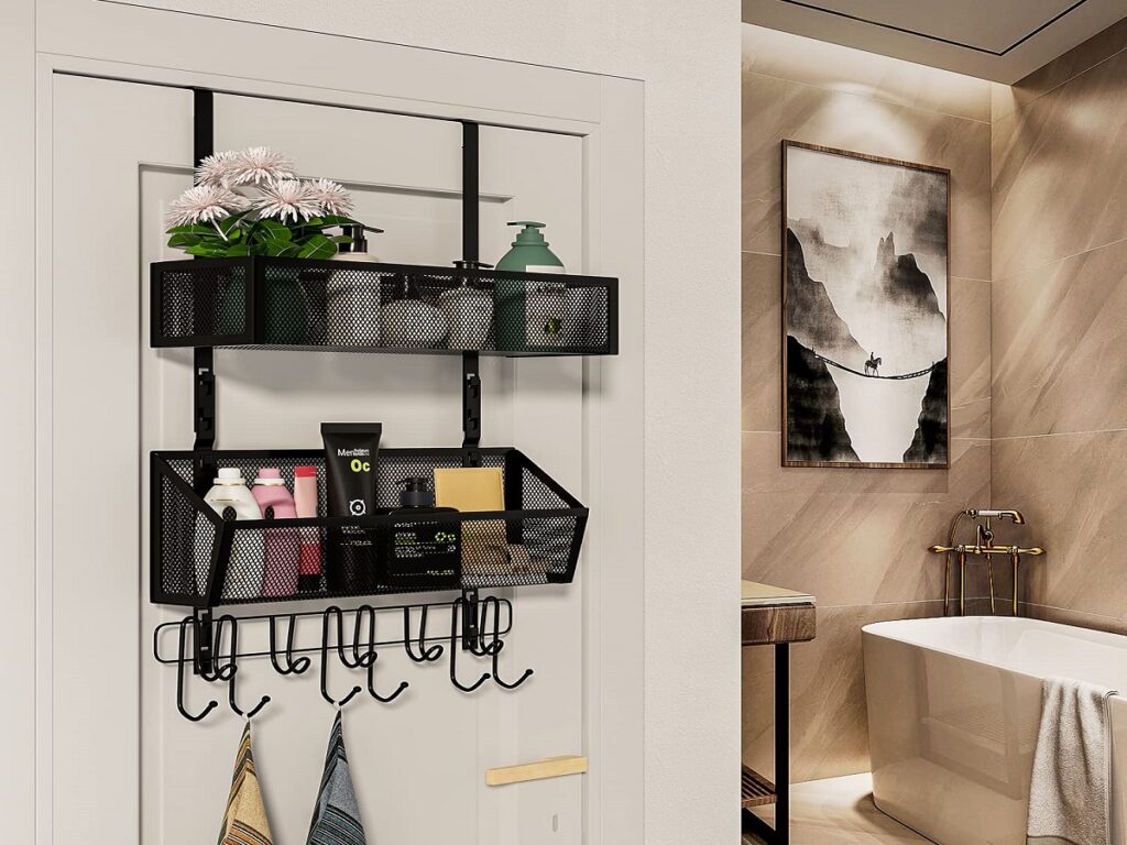 Originally developed for small apartments in the late 1990s, over-the-door cabinet racks remain a go-to for adding storage without drilling or permanent fixtures. These racks simply hang over cabinet doors and offer baskets or hooks for everyday items like towels, brushes, or hair tools. Modern versions are made of rust-resistant aluminum or coated wire mesh, ensuring durability in humid conditions. The best part is the flexibility; they can be easily moved or removed when cleaning or reorganizing. This simple, affordable upgrade instantly frees up valuable shelf space.