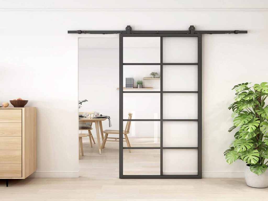 Inspired by mid-century factories and lofts, industrial-style pantry doors made from metal and glass became trendy in urban homes during the 2000s. The combination of matte steel frames and clear panes gives a bold, architectural feel. These doors pair well with exposed brick, concrete countertops, or minimalist cabinetry. They create a strong visual contrast while keeping an open, airy look, a perfect choice for anyone aiming for a sleek, city-inspired kitchen aesthetic.