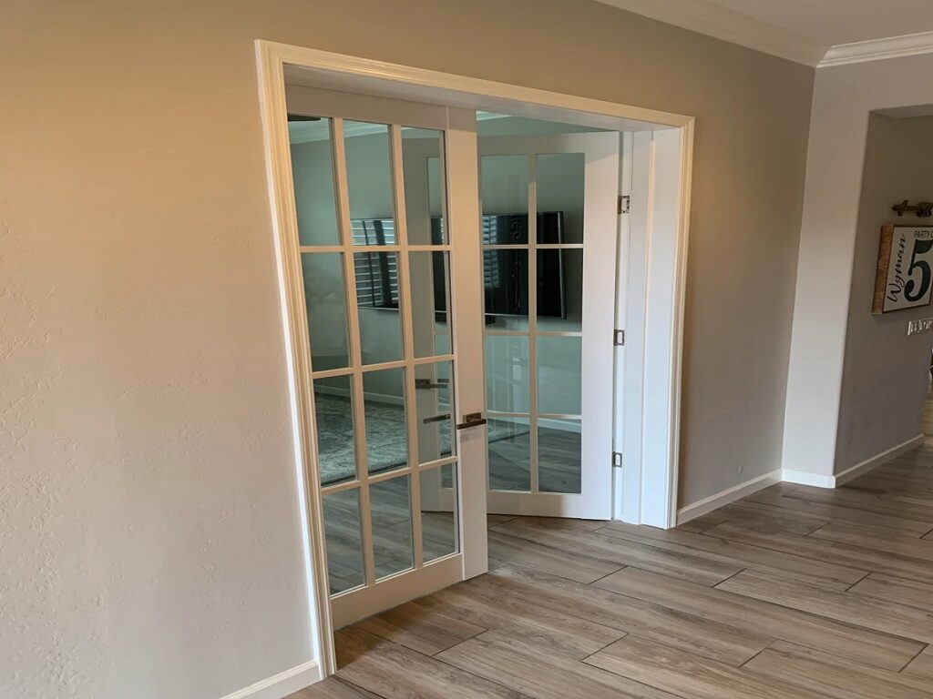 French doors, which rose to prominence in the 17th century, bring timeless grace to any kitchen. Featuring glass panes that allow visibility and light flow, they make your pantry feel connected yet distinct. Painted white or kept in natural wood tones, French pantry doors evoke a classic, airy aesthetic. They’re perfect for kitchens that aim for elegance and openness, blending seamlessly with both traditional and transitional interiors.
