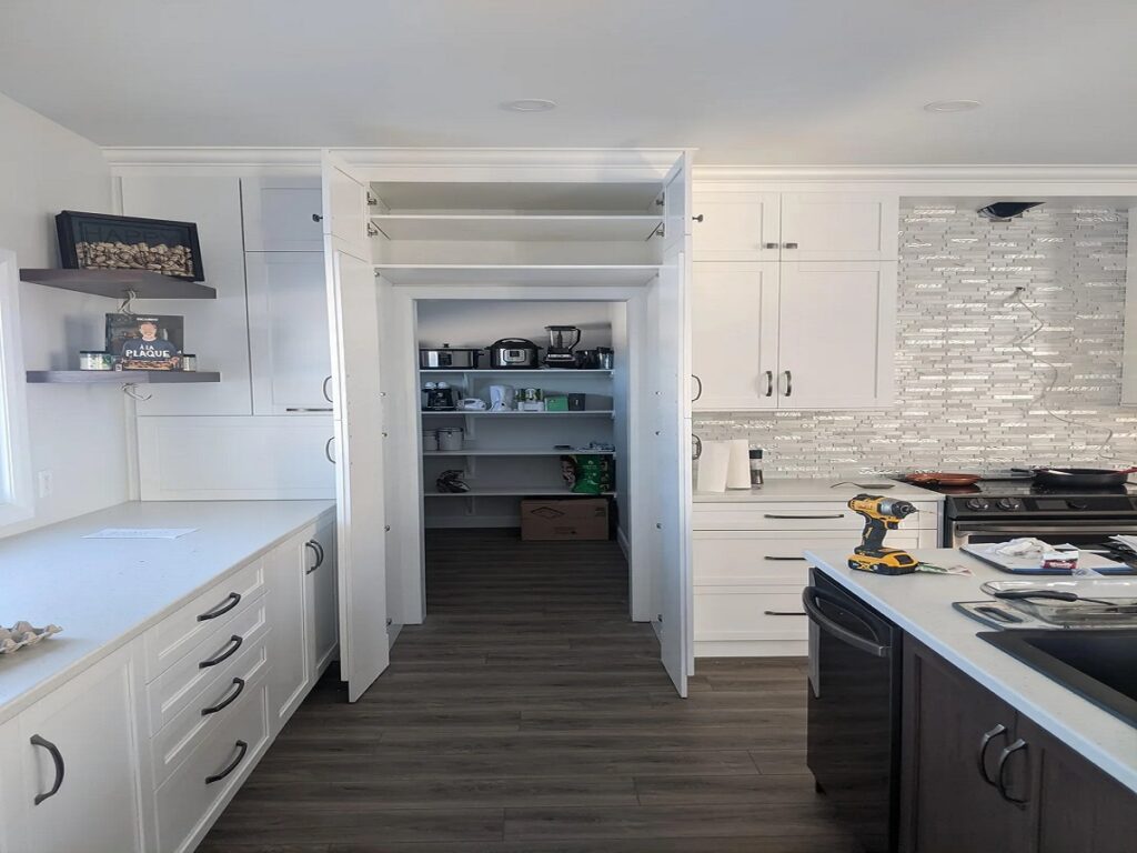 Hidden doors, or “invisible” pantry entrances, became popular in luxury homes of the early 21st century for their clean, minimalist appeal. Designed to blend seamlessly with kitchen cabinetry, they create a smooth, uninterrupted look. The door might open with a push-latch or disguised hinge, leading to a spacious walk-in pantry. This concept works wonderfully in contemporary kitchens where subtle sophistication and clutter-free design take priority.