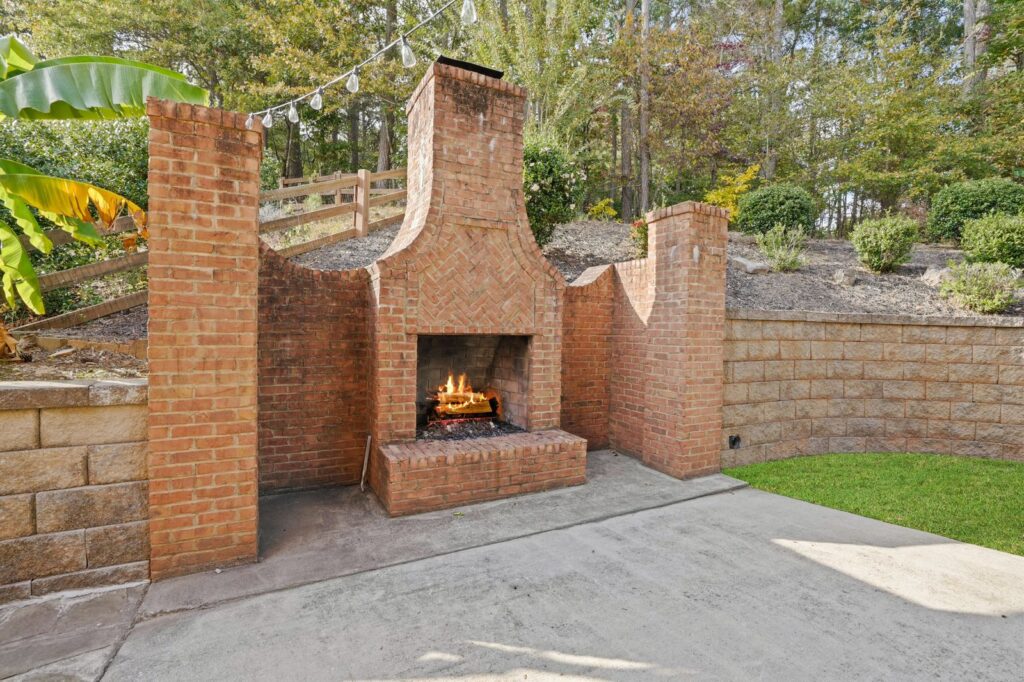 Brick fireplaces have been around since the 17th century, first appearing in early Colonial homes in New England. Outdoors, they carry that heritage into backyards, offering a nostalgic warmth that never feels outdated. With red or reclaimed brick, these fireplaces bring character and durability. Their symmetrical shapes often make them the focal point of a garden or patio. Pairing the fireplace with wrought iron seating captures the cozy colonial aesthetic, especially when the leaves start to turn.
