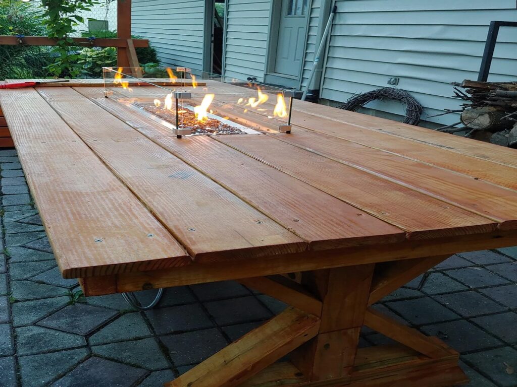 Fire tables first became popular in the 2000s for their low-profile design, but adding a backdrop wall transforms them into fireplace hybrids. Built from concrete, tile, or stone, the backdrop directs heat toward guests while doubling as décor. The table-height flame source makes it easy to gather around with drinks or small bites. Perfect for fall entertaining, this design combines casual dining with cozy warmth, creating an interactive centerpiece for seasonal gatherings.