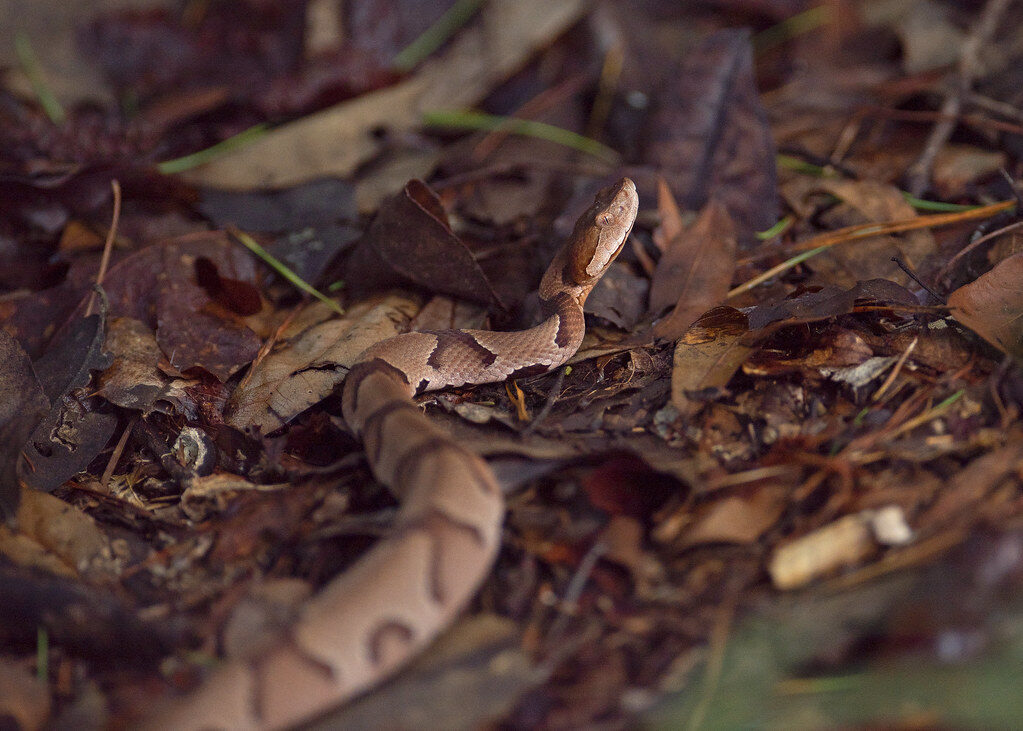 Copperheads are among the most commonly encountered venomous snakes in the United States, especially in forests, rocky areas, and suburban yards. They are easily identified by their copper-colored heads and hourglass-shaped markings on a tan or brown body. Though their venom is relatively mild compared to rattlesnakes, a bite is extremely painful and can result in swelling, bruising, and medical complications. Copperheads are ambush predators, often motionless near prey, so accidental encounters are more likely than aggressive attacks. Awareness and proper yard maintenance can reduce risks.