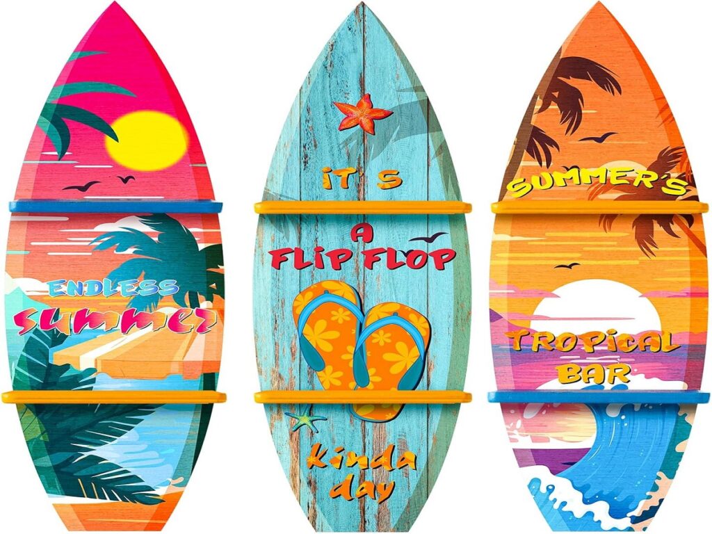 Retired surfboards from Encinitas, Huntington Beach, and other surf-centered towns began finding second lives as wall shelves in the early 2000s. Many were originally shaped by local board makers, giving the repurposed pieces a built-in sense of identity. Makers cut the boards into segments, reinforce them with discreet brackets, and preserve original artwork, wax marks, or color fades. Their curved silhouettes and bright details add playful coastal energy to offices, bedrooms, and reading corners. These shelves serve as functional décor while reflecting the deep cultural bond between California homes and the surf community.
