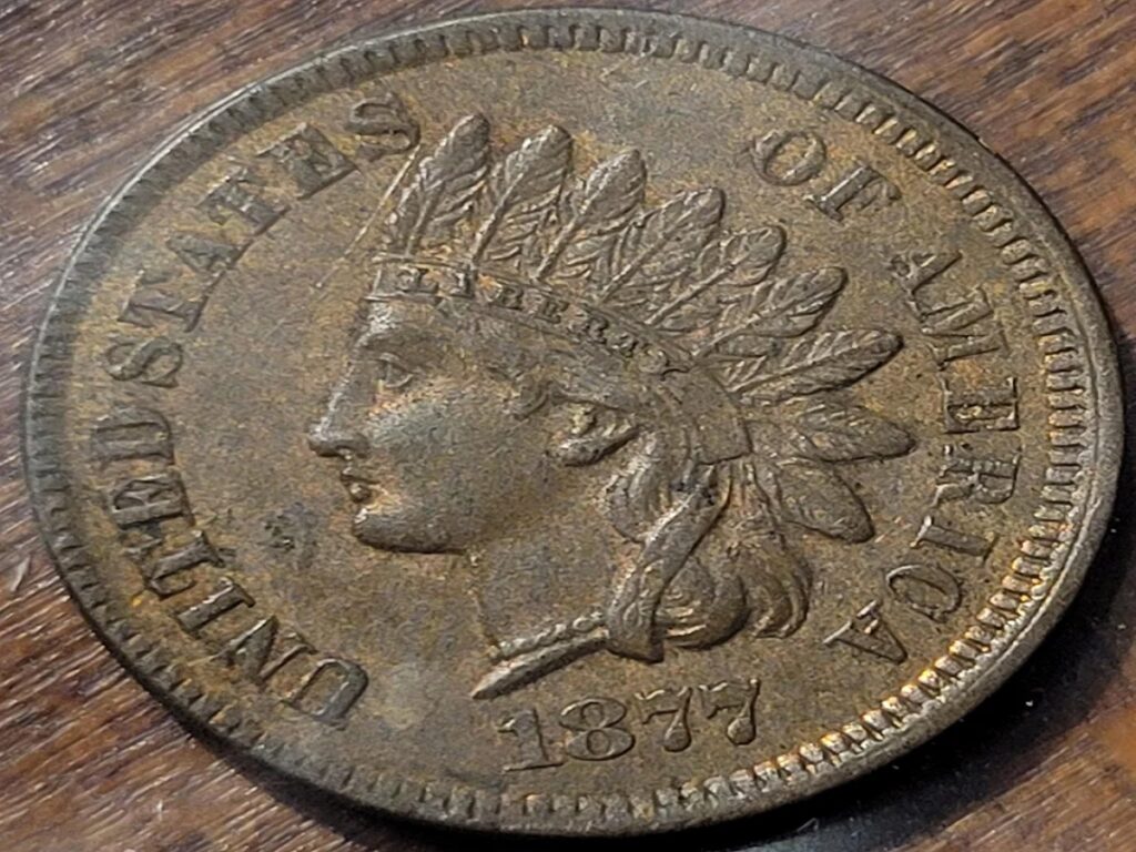 Among Indian Head cents, the 1877 issue is the most elusive. Minted in Philadelphia during an economic downturn, only about 852,500 were produced, a very low number compared to other years. Many were lost or heavily circulated, leaving few in collectible condition. The coin’s sharp design and rich history make it a favorite among advanced collectors. Even worn examples bring $800 or more, while pristine ones easily reach $5,000 to $10,000. The 1877 penny is often the key date that completes or defines an Indian Head collection.