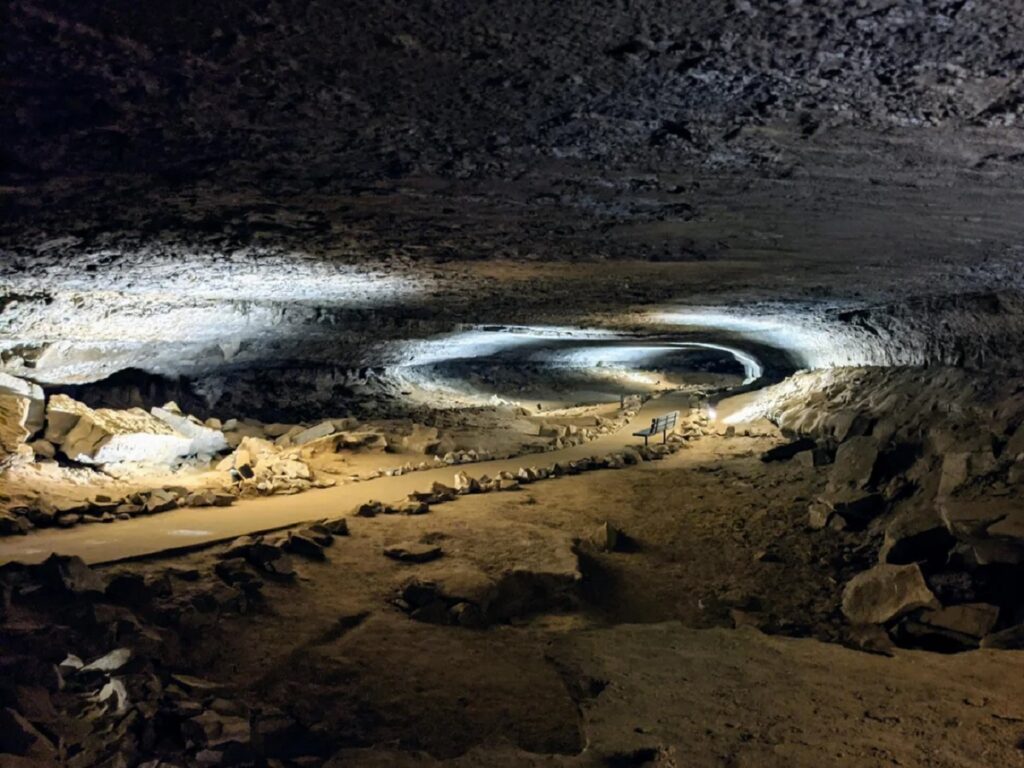 Near Flagstaff, the Lava River Cave formed around 650,000 years ago from a massive basaltic eruption. Measuring about 3,820 feet long, the tube’s ceiling shifts from towering 30-foot arches to narrow crawl spaces. Inside, the air stays around 40°F year-round, creating a brisk and eerie silence. The floor’s uneven lava ripples tell a story of molten currents that once rushed beneath the crust. Visitors today walk the same tunnel carved by a lava river that flowed when mammoths still roamed the land.